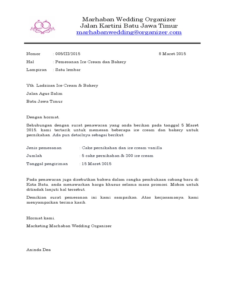 Contoh surat penawaran catering makanan. Melalui contoh surat penawaran diatas, dapat dilihat komponen isi dan format dalam sebuah surat penawaran. Namun agar bisa menjual produk anda dengan luas dan dalam jumlah yang besar. Oleh karena itu tak ada salahnya anda mempelajari contoh surat penawaran barang sejak sekarang. Tujuan dibuat surat penawaran ini, supaya jasa atau barang yang anda tawarkan bisa berjalan dengan lancar. Cara ini memang tidak bisa dilakukan oleh sejumlah perusahaan jasa lainnya. Download & view contoh surat penawaran catering as pdf for free. Contoh surat penawaran catering by cakdidikk in types > brochures, catering, and surat. Contoh surat penawaran barang adalah surat yang dimaksudkan untuk menawarkan produk berupa barang atau jasa kepada perusahaan yang kemungkinan besar membutuhkan barang dan jasa tersebut. Surat ini bisa dibuat atas inisiatif perusahaan, atau sebagai. Jenis surat ini tergolong masih merupakan salah satu jenis surat. Perusahaan yang bergerak di bidang catering merupakan perusahaan yang banyak diminati sekarang ini. Pictures gallery of contoh surat penawaran jasa catering.